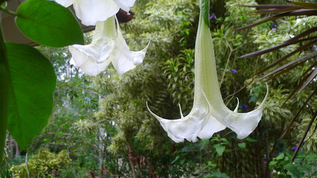 The beautiful Angel Trumpets, Brugmansia is again in full flower, their exquisite fragrance reawakens when the sun goes down.